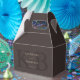 Minimalist personalized wedding favor boxes personalized with modern typography monogram initials in brown color design.