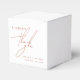 Caligrafía de escritura moderna y mínima en rústica caja de favores de boda de terracota.