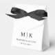 Esta elegante y moderna caja de favores matrimoniales cuenta con un sencillo diseño de texto en blanco y negro que exuda el estilo minimalista. Añada sus iniciales o su monograma para hacerlas completamente propias.