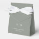 Esta elegante caja de favores matrimoniales moderna presenta un sencillo diseño de texto en blanco y verde sabio que rebosa de estilo minimalista. Añada sus iniciales o su monograma para hacerlas completamente propias.