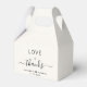 Caja de favores de boda crema de moda con "amor + gracias" en una tipografía simple y moderna y un guión elegante de caligrafía con chispas, tus primeros nombres unidos por un corazón y tu fecha boda.