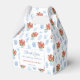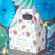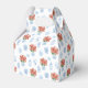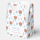 Elegantes cajas de favores con un patrón compuesto de jarrones jengibre, una de las cuales está plantada con una hermosa poinsettia roja.
