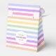 Sencillo diseño minimalista de moda para el cumpleaños con estampado blanco de rayas color arcoiris pastel. Personalizar con tu propio texto para un diseño personalizado. Diseño extravagante perfecto para cualquiera de las fiestas temáticas LGBTQ.