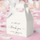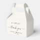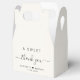 Caja de favores de bodas con crema de moda con "un dulce gracias" en una tipografía simple y un guión elegante con toques, tus primeros nombres unidos por un corazón y tu fecha boda.