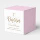 Celebrate your child’s baptism with this elegant pink and gold favor box featuring a modern script design, gold cross, and personalized details. Perfect for party favors, treats, rosaries, or small gifts at baptisms, christenings, and dedications. A stylish keepsake for guests and a beautiful addition to your celebration décor. Soft blush tones and faux gold accents make it a trending choice for modern religious events.