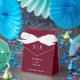 Elegante caja de favores burdeos y de bodas doradas personalizada con sus nombres, iniciales de monograma, fecha boda y mensaje especial de agradecimiento. Diseñado por Thisisnotme©