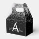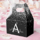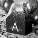 Caja Para Regalos Monograma Brillante Plateado y Negro con Destellos