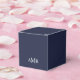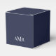 El diseño clásico presenta un monograma inicial de 3 letras personalizado en un estilo de fuente serif clásico blanco sobre fondo azul marino.
