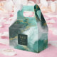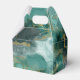 Sus sueños finalmente se están haciendo realidad y este diseño abstracto de tinta alcohólica que fluye, establece el tono perfecto para el fabuloso boda que siempre imaginaste. En tonos de verde cristal de mar a esmeralda oscura, acentuada con oro brillante, la caja de favores de estilo gable que se muestra aquí proporciona una plantilla para añadir fácilmente sus iniciales, fecha boda y mensaje de agradecimiento. Buscar ID988 para ver otras piezas en este conjunto de bodas coordinado.