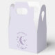 Caja de bienvenida para la fiesta temática de una pequeña estrella. Hay una forma de luna y estrellas en Relieve metalizado de imitación lavanda. Personalizar este producto agregando el nombre de la futura mamita y la fecha del evento.
