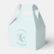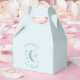 Caja de bienvenida para la fiesta temática de una pequeña estrella. Hay una forma de luna y estrellas en Relieve metalizado de imitación de menta. Personalizar este producto agregando el nombre de la futura mamita y la fecha del evento.