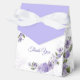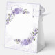 Favorecer cajas con un diseño floral púrpura.
