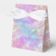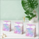 Brillo holoesco suave de formas geométricas en capas rosa, acuática y dorada. Una pila muy ordenada de purpurinas.