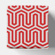 Un motivo geométrico inspirado en el art déco egipcio, de color rojo oscuro sobre un fondo gris claro