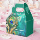 Caja Para Regalos Mozo de plumas de pavo real verde azulado oro verd