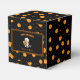 Una linda y divertida caminata de la momia trae calabaza de Halloween y calabazas de calabazas sin fisuras de jack-o'-lantern en negro con escritura Happy Halloween y Trick or o Treat con la fiesta personalizada de Halloween Favor Box. Puede cambiar fácilmente el texto y el color o eliminarlo haciendo clic en las opciones de personalización.