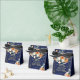 Naranja rosas blancas flores verde fondo azul marino dorado marco geométrico boda floral cajas de favores personalizadas.