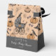 La caja de Baby Shower "Gracias" personalizada de Halloween/Fall, con carros de bebé dibujados a mano, cuervos negros, gorras de brujas, calabazas, telarañas y pequeñas setas en un elegante fondo naranja de luz. Impreso tanto en el frente como en el reverso. Simplemente haga clic en "Personalizar esta plantilla" para insertar su propio evento y fecha.