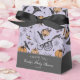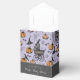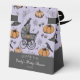 La caja de Baby Shower "Gracias" personalizada de Halloween/Fall, con carros de bebé dibujados a mano, cuervos negros, gorras de brujas, calabazas, telarañas y pequeñas setas con un elegante fondo morado claro. Impreso tanto en el frente como en el reverso. Simplemente haga clic en "Personalizar esta plantilla" para insertar su propio evento y fecha.