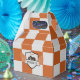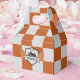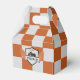 caja de favores de cuadros de naranja y gris. Para los cumpleaños y celebraciones de los niños.