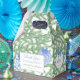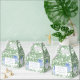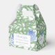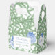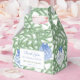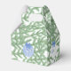 Elegantes cajas de favores con una acuarela de fondo de pino, acompañadas de baubles blancos y azules pintados a mano, los extremos están personalizables con las iniciales de la pareja.