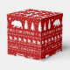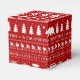 Caja de Regalo de Navidades de California. Patrón de vacaciones estilo suéter de punto verde y blanco con oso del estado de California, autos lindos, renos y un perro montando un patineta. Un Navidad de California: Amor, Alegría, Paz, Sunshine. Paquete de regalo de Navidad original para californianos.