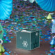 Pase los regalos de vacaciones con esta fantástica caja de Navidades de Invierno Verde azulado de Snowman Scenery. El diseño de la caja de favoritos presenta a un muñeco de nieve feliz en una escena de invierno nevada con un fondo verde azulado adornado con copos de nieve a color. También hay artículos de regalo y de vacaciones disponibles con este diseño.