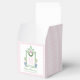 Esta caja de regalo presenta un diseño de estilo Preppy Chinoiserie con un marco de pagoda de bambú verde con una corona de Navidades con un arco rosado y dos topiarios en macetas Chinoiserie. En el fondo hay un texto verde que dice "Feliz Navidad". Puede personalizar con un nombre y su inicial. El fondo tiene un patrón de gingham de coordinación.