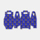 Una caja de regalo de Navidades festivos con un patrón de Navidades de oro baubles con arcos dorados, sobre un fondo azul real para añadir un toque de elegancia a los regalos de sus Navidades que dan esta temporada de vacaciones.
