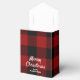 Caja de Favor de Buffalo Rojo y Negro en forma triangular con arco, con Confetti Purpurina de Oro y redacción personalizada es perfecta para dar a los Navidades Regalos y favores de fiesta de vacaciones.