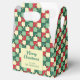 Esta caja de Navidades muestra un texto retro verde sobre un marco color crema contra el fondo del patrón de la pieza de rompecabezas del tono de color Navidad. Personalízalos añadiendo tu información.