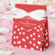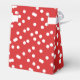 Fondo rojo y Navidades de confeti blancos en la caja de preferencia.