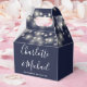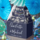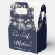 Elegante caja de favores de boda con luces de cadena de bonito, nombres de guión de firma de moda y fecha especial en un fondo azul marino. Puedes personalizar con tu propio mensaje de agradecimiento al revés. ¡Una forma perfecta de agradecerles a sus huéspedes! Diseñado por Thisisnotme©