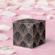 Caja elegante con diseño art déco en rosa dorada y negro.