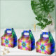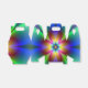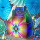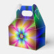Caja de favores de estilo gable con una imagen de un brillante fractal de margarita de neón. Vea la invitación, sobres, bolso de favores, etiqueta de favor, gran bolsa de regalo y papel de envoltura. Ver la colección Psychedelic 60s Favor Box en los TOUCHES ESPECIALES | Sección de favoritos de partido.