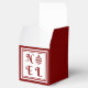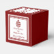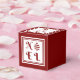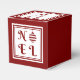 Caja de favores del partido Navidades cuadrados clásicos con una impresión de texto NOEL en rojo y blanco y un diseño en baudible de Navidades a rayas en la parte delantera y en la parte superior y una plaza roja y blanca con un mensaje de texto personalizado en la parte posterior. Decoración fiesta Navidad a juego.