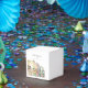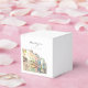 Esta caja de favores cúbicos presenta una pintura acuarela de la calle Bourbon en Nueva Orleans y una sencilla combinación de fuentes. Esta caja se puede usar para cualquier evento tropical o de playa como un boda, una ducha de bebé, un fiesta de retiro, etc.
