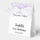 Una elegante y glamorosa fiesta de cumpleaños número 21 (o cualquier edad). Un fondo blanco de moda con confetti violeta de color lavanda. Con el texto: ¡Gracias! Personaliza y agrega tu nombre. El nombre está escrito con un guión de estilo moderno con letras a mano.