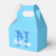 Nombre de los niños con la letra N inicial. Fondo azul. Impresión de patrón de manchas azules. Cajas de favor decorativas. Editar el nombre al personalizar. la idea de la decoración fiesta.