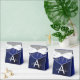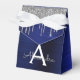 Cajas de regalo para fiestas de papel de monograma y inicial de metal con brillo metálico de lámina de falso foil azul marino y plateado. Esto hace que el regalo perfecto de cumpleaños número 16, boda, despedida de soltera, aniversario, baby shower o fiesta de soltera para alguien que ama el lujo glamoroso y los estilos chic.