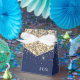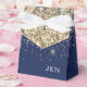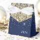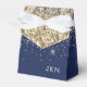 Cajas de regalo de papel dorado y azul marino con monograma brillante para fiestas. Esto hace el regalo perfecto para cumpleaños de dulces 16, boda, despedida de soltera, aniversario, baby shower o fiesta de soltera para alguien que ama el glamour de lujo y los estilos chic.