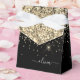 Cajas de regalo de papel dorado y negro con brillo glitter monograma nombre e inicial Esto hace el regalo perfecto para cumpleaños 16, boda, despedida de soltera, aniversario, baby shower o fiesta de soltera para alguien que ama el glamour de lujo y estilos chic.