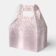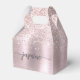 Caja de favor personalizada con brillo rosa dorado metálico con monograma de nombre en guión. Estos diseños presentan su primer nombre en una hermosa tipografía de letra manuscrita con cola de florituras y tipografía de firma en lámina metálica dorada rosa sobre fondo rosa suave con borde de brillo glamuroso. Estas cajas de regalo femeninas y elegantes son ideales para regalar, obsequiar a los invitados y dar golosinas durante una próxima fiesta de cumpleaños, cumpleaños número 16, baby shower, barbacoa, recepción de boda, despedida de soltera, ducha de novia, aniversario y más.