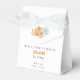 Nuestra pequeña calabaza está convirtiendo un elegante tema de la cascada de agua en una caja de favores personalizada de primer cumpleaños.