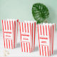 Nuestro amor es cortar cajas de favores de boda de Ricaso. Una divertida caja de favores con tema de palomitas para los huéspedes bodas. Llénalo con palomitas de maíz para una divertida adición de boda. Añada los nombres de las parejas y la fecha del boda (u otro texto) diseñado en un patrón tradicional de rayas rojas y blancas.