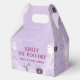 Este diseño muestra un divertido tema de Halloween con un suave fondo violeta. Un fantasma adorable, un gorra de brujas, está acompañado de elementos divertidos como una tela delicada y un caldero de bruja burbujeante, que dan un tono festivo y dulce. Personalice las cajas de favoritos con el nombre de su hijo y los detalles del fiesta para que le den un toque único y reconfortante que captura perfectamente el espíritu de la celebración de su primer cumpleaños.