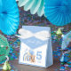 Estas lindas cajas de favores de la fiesta de cumpleaños incluyen un lindo oso de peluche color agua con globo y arco iris sobre fondo blanco. Personalice el cuadro de favor de la fiesta de cumpleaños agregando el nombre, la edad y los detalles del fiesta de su hijo.
