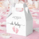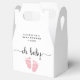Cajón de favores de ducha de bebé con "oh baby" en un guión elegante con toallitas y una acuarela rosa de pies de bebé. Personalice el nombre de la futura madre y la fecha de la ducha.