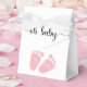 Casilla de favores de fiesta para tu ducha de bebé con "oh baby" en un guión elegante con toques y una acuarela rosa de pies de bebé. Debajo de la solapa se puede personalizar fácilmente con el nombre de la futura madre y la fecha de ducha.