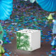 Imagen de un árbol antiguo con dos tonos de verde. Esta imagen contiene impresos en todo sobre 5 caras del cubo. La parte superior contiene una imagen con pequeños cuadrados transparentes donde se imprime texto (Reunificación familiar, nombre familiar y fecha) para personalizar.